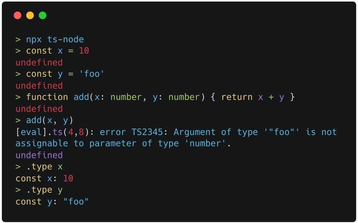 TypeScript execution and REPL for node.js, with source map support. Works with